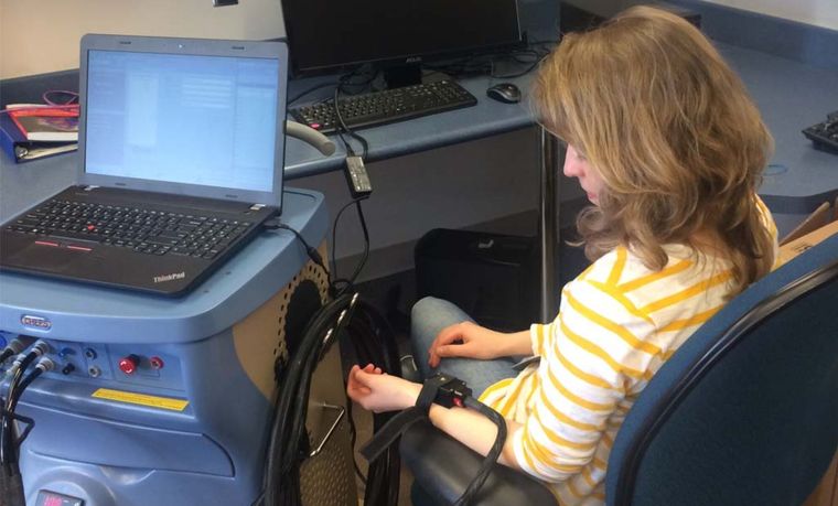 Adolescent participating in intervention research focused on classical conditioning – a key element underlying the placebo effect – of thermal perception in youth. Differences in thermal ratings in response to conditioned cues are being assessed, and this indicates either attenuated or amplified thermal perception.
