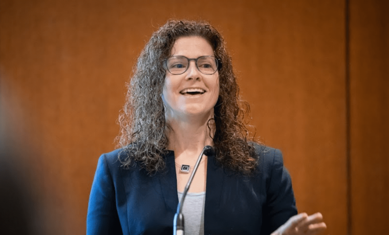 Kari Hoffman speaking at the 2018 Brain Canada AGM.